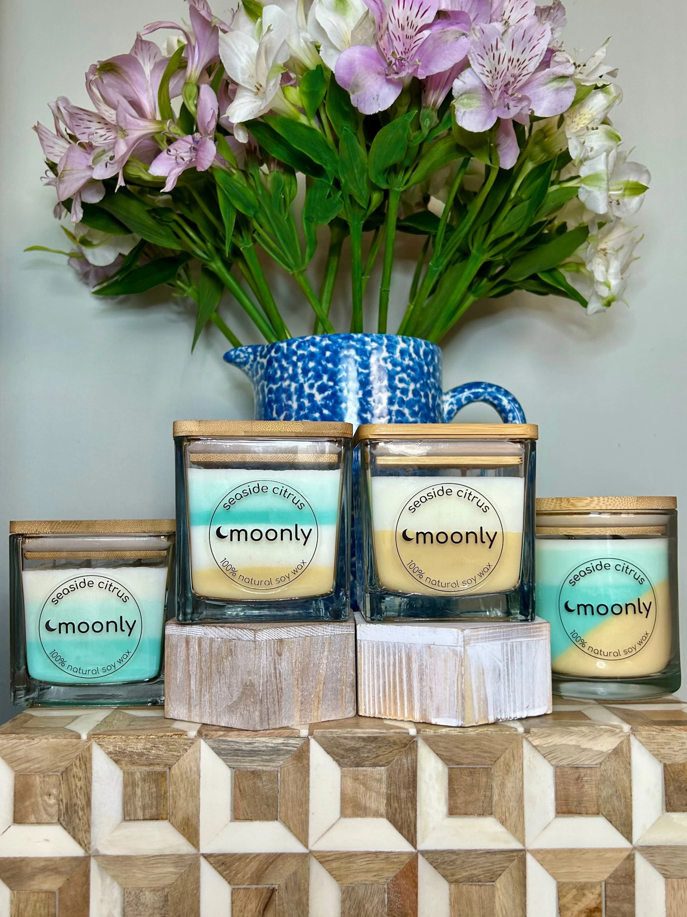 hand-poured artisanal soy candles inspired by moonlight and the sea.